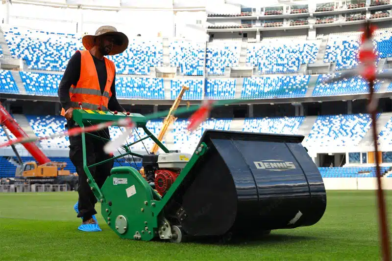 Les dimensions du terrain restent de 105 × 68 m, avec une pelouse naturelle conforme aux normes de la FIFA. Une nouvelle toiture est en cours d’installation, assurant la protection de tous les spectateurs, faisant du stade l’un des plus avancés d’Afrique.
